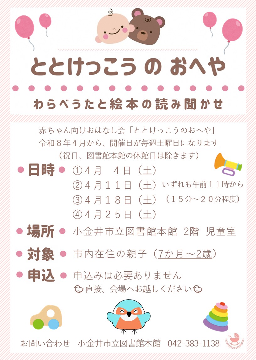 【本館】赤ちゃん向けおはなし会「ととけっこうのおへや」のお知らせ