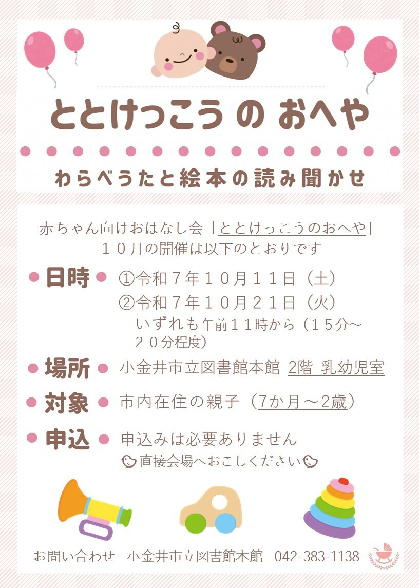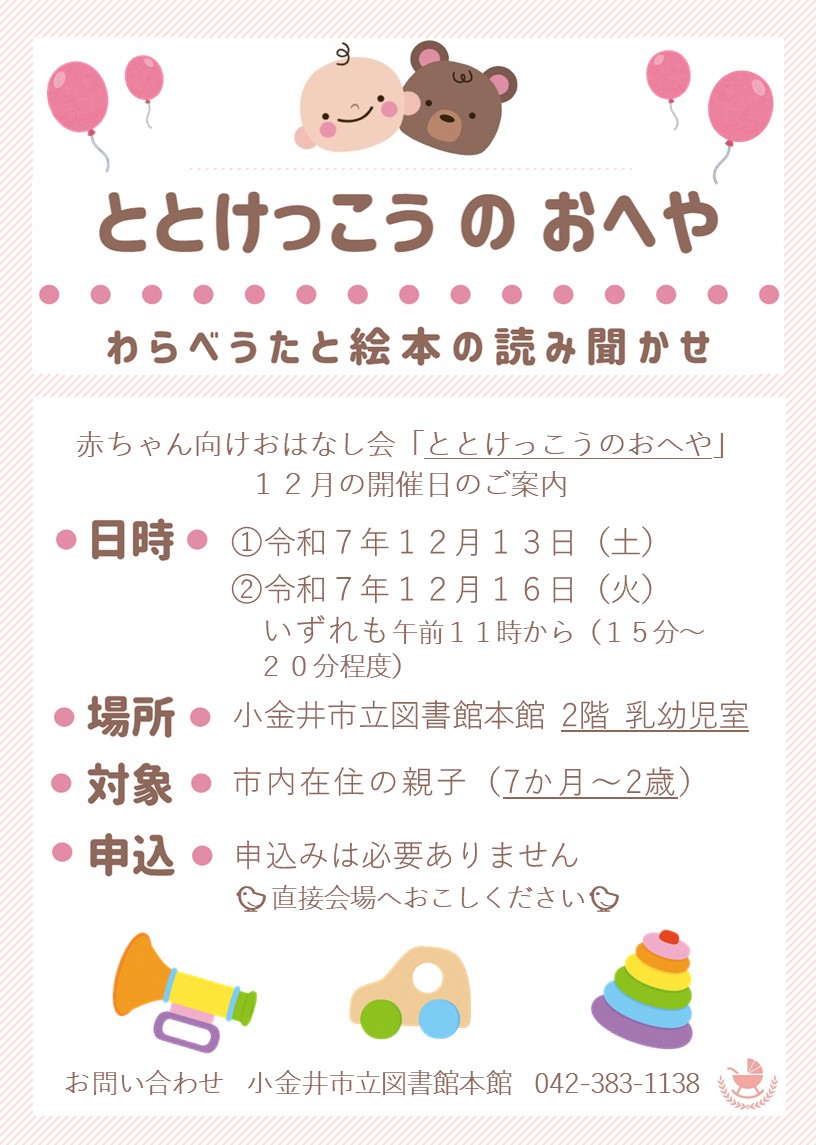 【本館】赤ちゃん向けおはなし会「ととけっこうのおへや」のお知らせ
