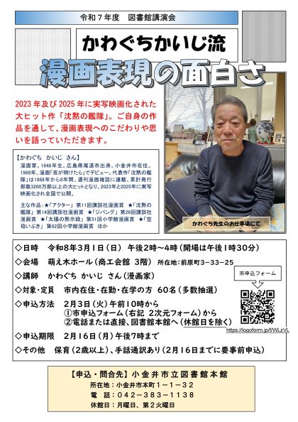 【本館】図書館講演会「かわぐちかいじ流 漫画表現の面白さ」を開催します